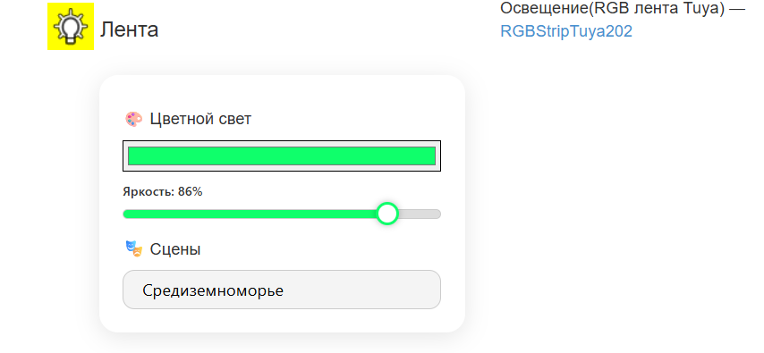 Лента должна быть подключена через hab Tuya и модуль Tuya smarthome! (Не через zigbee2mqtt!)